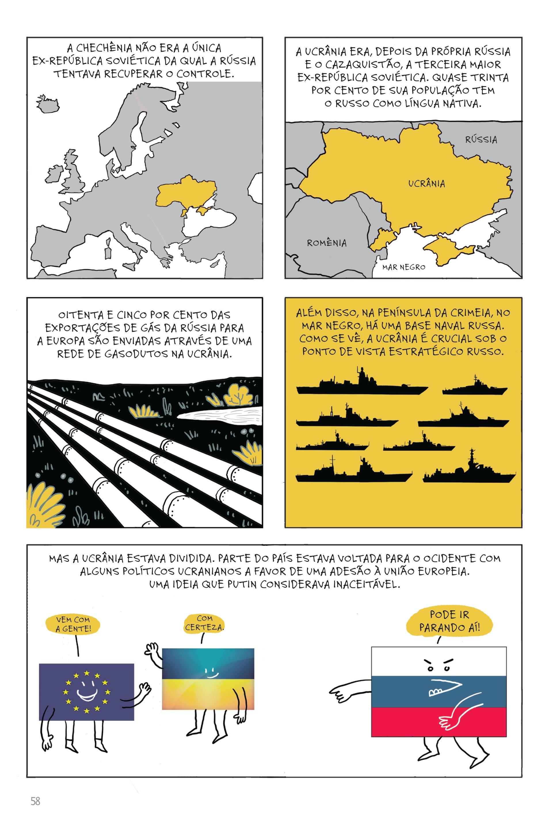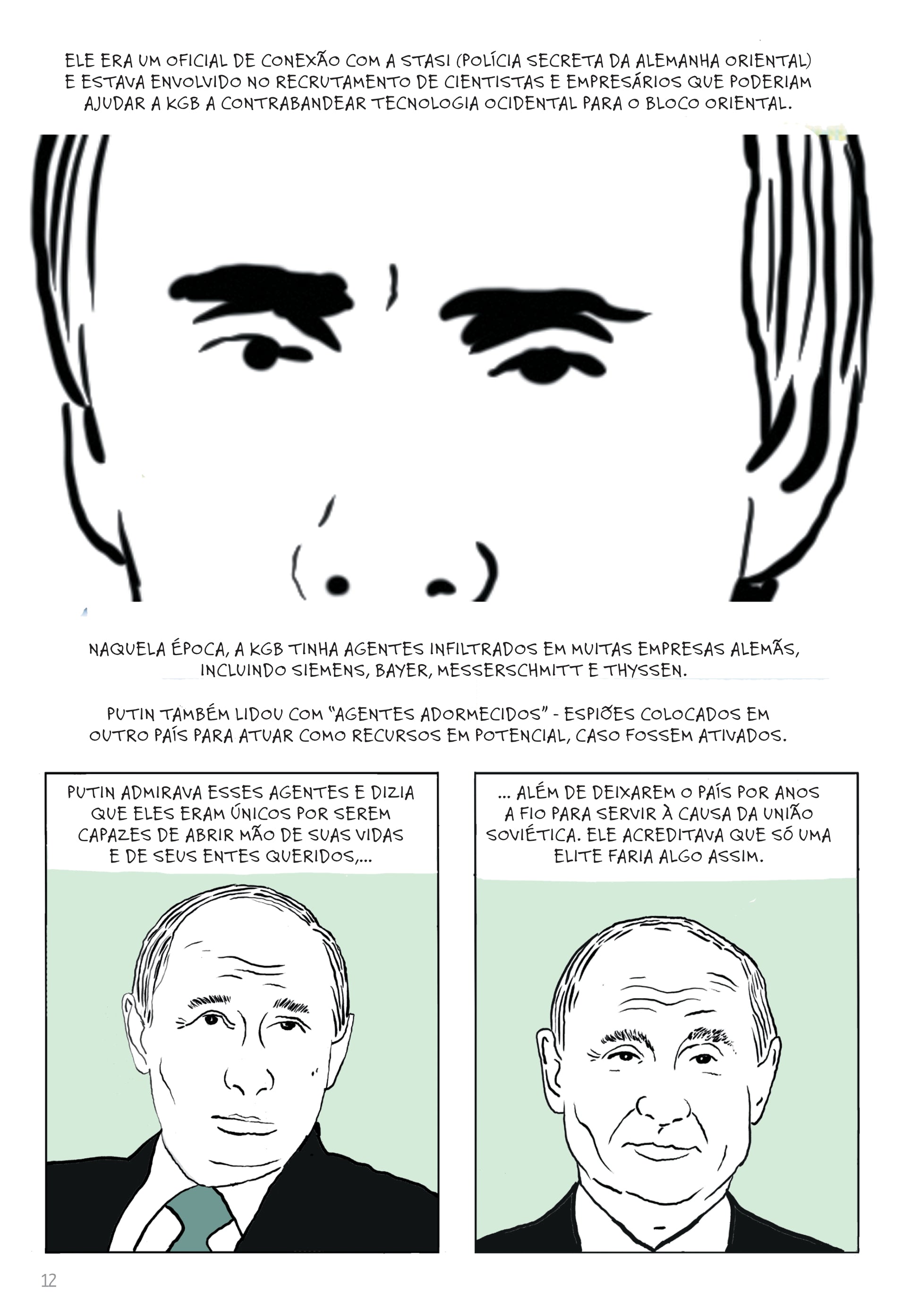 O jornalista gráfico best-seller do The New York Times, Darryl Cunningham, investiga a história por trás do cartel criminoso de Putin e sua influência malévola no mundo: Cunningham analisa as guerras na Síria, na Geórgia e na Ucrânia, cujas raízes estão nas ambições de Putin de restaurar os antigos territórios da Rússia; investiga os envenenamentos de Salisbury, os brutais assassinatos do político Boris Nemtsov e da jornalista Anna Politkovskaya, em Moscou, além do assassinato de Alexander Litvinenko, em Londres. Cunningham mostra como o governo russo interferiu nas eleições americanas e por que o Ocidente fazia vista grossa, até a recente invasão da Ucrânia.